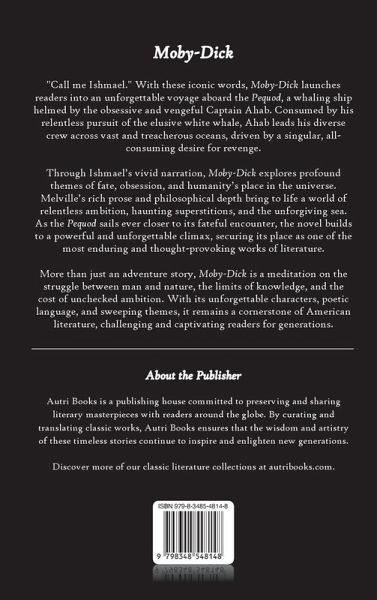 Ishmael, a restless sailor, embarks on a whaling voyage aboard the Pequod under the command of Captain Ahab, a man consumed by a vengeful pursuit of the legendary white whale, Moby Dick. As the crew sails deeper into the vast and unforgiving ocean, they encounter danger, camaraderie, and the inescapable pull of destiny. Ahab's obsession drives them all toward an epic confrontation that will test the limits of human endurance and fate.Blending adventure, philosophy, and poetic prose, Moby-Dick is a powerful exploration of ambition, revenge, and the mysteries of existence. A cornerstone of American literature, Herman Melville's novel continues to captivate readers with its depth and intensity.