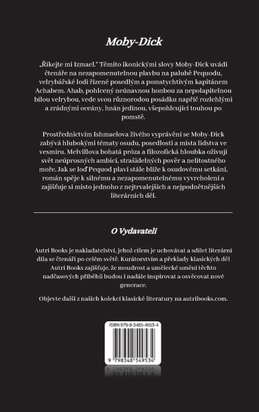 Ishmael, neklidný námořník, se vydává na velrybářskou výpravu na palubě lodi Pequod pod velením kapitána Achaba, muze, který je pohlcen pomstychtivým pronásledováním legendární bílé velryby Moby Dicka. Jak se posádka plaví hlouběji do rozlehlého a nelítostného oceánu, setkává se s nebezpečím, kamarádstvím a nevyhnutelnou silou osudu. Achabova posedlost je vsechny zene vstříc epické konfrontaci, která prověří hranice lidské odolnosti a osudu.Moby-Dick, v němz se mísí dobrodruzství, filozofie a poetická próza, je silným zkoumáním ambicí, pomsty a tajemství existence. Román Hermana Melvilla, který je základním kamenem americké literatury, stále uchvacuje čtenáře svou hloubkou a intenzitou.