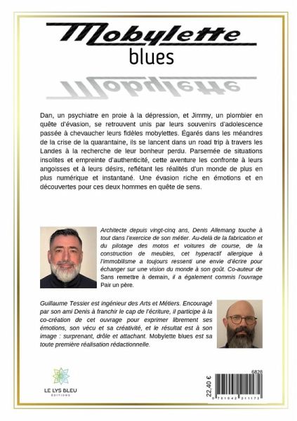 Architecte depuis vingt-cinq ans, Denis Allemang touche à tout dans l¿exercice de son métier. Au-delà de la fabrication et du pilotage des motos et voitures de course, de la construction de meubles, cet hyperactif allergique à l¿immobilisme a toujours ressenti une envie d¿écrire pour échanger sur une vision du monde à son goût. Co-auteur de Sans remettre à demain, il a également commis l¿ouvrage Pair un père. Guillaume Tessier est ingénieur des Arts et Métiers. Encouragé par son ami Denis à franchir le cap de l¿écriture, il participe à la co-création de cet ouvrage pour exprimer librement ses émotions, son vécu et sa créativité, et le résultat est à son image : surprenant, drôle et attachant. Mobylette blues est sa toute première réalisation rédactionnelle.