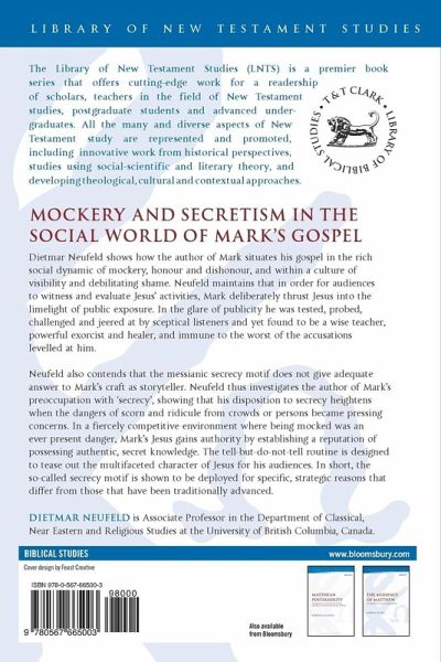 Having established the context of mockery and shame in Ancient Mediterranean cultures, Dietmar Neufeld shows how Mark presented Jesus as a person with a sense of honour and with a sense of shame, willing to accept the danger of being visible and the mockery it attracted. Neufeld also considers the social functions of ridicule/mockery more broadly as strategies of social sanction, leading to a better understanding of how social, religious, and political practices and discourse variously succeeded or failed in Mark. Finally, Neufeld investigates the author of Mark's preoccupation with 'secrecy', showing that his disposition to secrecy in his narrative heightened when the dangers of scorn and ridicule from crowds or persons became pressing concerns. In a fiercely competitive literary environment where mocking and being mocked were ever present dangers, Mark, in his pursuit of authority gains it by establishing a reputation of possessing authentic, secret knowledge. In short, the so-called secrecy motif is shown to be deployed for specific, strategic reasons that differ from those that have been traditionally advanced.