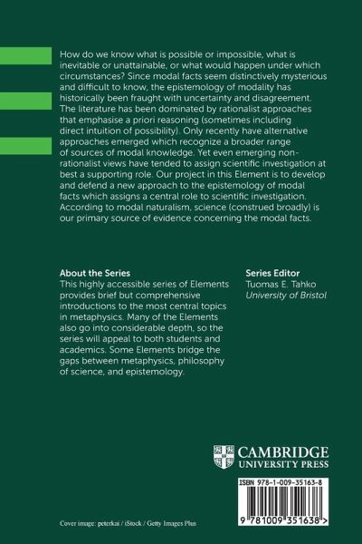 The epistemology of modal facts has been a topic of uncertainty and disagreement, with recent literature dominated by rationalist approaches. This Element aims to develop a new approach central to scientific investigation, focusing on modal naturalism, which views science as the primary source of evidence concerning modal facts.