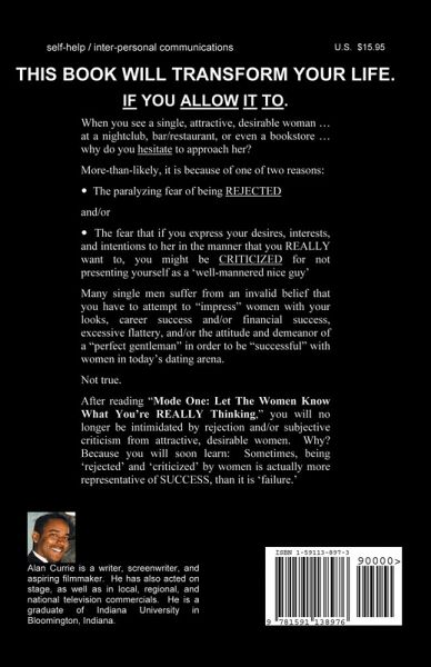 Do women generally categorize you as a "nice guy??" Do they really now . . . Okay, let me ask you something. Is that "nice guy" tag helping to improve your social life, love life and/or sex life?? 99.9% chance, I doubt it. Many women SAY they want a "nice guy," but realistically … don't believe the hype. Women want a man who stimulates them ... Intellectually . . . Emotionally . . . Sexually. The #1 non-physical characteristic that enhances your sex appeal with a woman is a 'fearless' sense of self-confidence & self-assurance as well as straightforward honesty. This is exactly what the principles of Mode One Behavior provide you with. When you're afraid of being criticized by women, disliked by women, rejected by women, and/or indefinitely ignored by women ... guess what?? You will experience all of those miserable responses from women. Fear is essentially a self-fulfilling prophecy. When you 'fear' something, that means, subconsciously, you don't want it to happen, but you fully EXPECT it to happen. What many men don’t consciously realize is, many women will pretend to have one set of desires, interests, and intentions, when in reality, they may have a totally different set of desires, interests, and intentions. Let’s say you were in the company of a woman who "pretended" to only be interested in a serious, long-term, monogamous relationship, but in reality, she really wanted to engage in casual sex. How would you know the difference? If you were in the company of a woman who "pretended" to be sexually conservative and/or prudish, but in reality, was really, really erotically uninhibited and kinky, how would you know the difference? If you were in the company of a woman who wanted nothing more than to manipulate you, waste your time, and get you to spend money ‘wining & dining’ them, but they were "pretending" to have a genuine interest in you, how would you know the difference? MODE ONE explains how you will almost immediately be able to distinguish the difference between genuine, non-manipulative women, and the more phony, manipulative, duplicitous type women. Rejection by women is not your #1 enemy. Subjective criticisms and/or opinionated insults are not your #1 enemy. Wasting TIME and MONEY pursuing women who are not genuinely interested in you is your true #1 enemy. What are you waiting for?? The paperback version and E-Book version of my book, Mode One: Let The Women Know What You're REALLY Thinking can be purchased RIGHT NOW. (And if you’re a woman reading this … many of those who have already read the E-Book version have been women! Women can exhibit Mode One Behavior to their benefit as well).