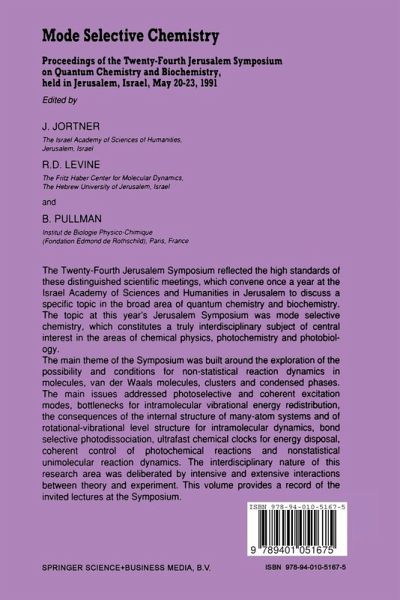 The Twenty Fourth Jerusalem Symposium reflected the high standards of these distinguished scientific meetings, which convene once a year at the Israel Academy of Sciences and Humanities in Jerusalem to discuss a specific topic in the broad area of quantum chemistry and biochemistry. The topic at this year's Jerusalem Symposium was mode selective chemistry, which constitutes a truly interdisciplinary subject of central interest in the areas of chemical physics, photochemistry and photobiology. The main theme of the Symposium was built around the exploration of the possibility and conditions for non-statistical reaction dynamics in molecules, van der Waals molecules, clusters and condensed phases. The main issues addressed photoselective and coherent excitation modes, bottlenecks for intramolecular vibrational energy redistribution, the consequences of the internal structure of many-atom systems and of rotational vibrational level structure for intramolecular dynamics, bond selective photodissociation, ultrafast chemical clocks for energy disposal, coherent control of photochemical reactions and nonstatistical unimolecular reaction dynamics. The interdisciplinary nature of this research area was deliberated by intensive and extensive interactions between theory and experiment. This volume provides a record of the invited lectures at the Symposium.