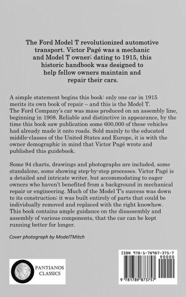 The Ford Model T revolutionized automotive transport. Victor Pagé was a mechanic and Model T owner; dating to 1915, this historic handbook was designed to help fellow owners maintain and repair their cars. A simple statement begins this book: only one car in 1915 merits its own book of repair - and this is the Model T. The Ford Company's car was mass produced on an assembly line, beginning in 1908. Reliable and distinctive in appearance, by the time this book saw publication some 600,000 of these vehicles had already made it onto roads. Sold mainly to the educated middle-classes of the United States and Europe, it is with the owner demographic in mind that Victor Pagé wrote and published this guidebook. Some 94 charts, drawings and photographs are included, some standalone, some showing step-by-step processes. Victor Pagé is a detailed and intricate writer, but accommodating to eager owners who haven't benefited from a background in mechanical repair or engineering. Much of the Model T's success was down to its construction; it was built entirely of parts that could be individually removed and replaced with the right knowhow. This book contains ample guidance on the disassembly and assembly of various components, that the car can be kept running better for longer.