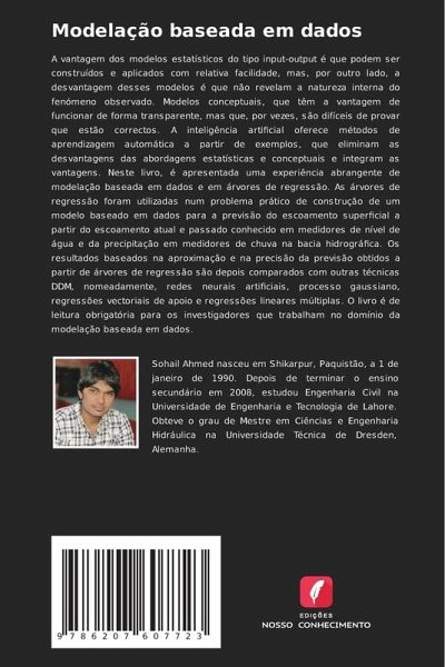 A vantagem dos modelos estatísticos do tipo input-output é que podem ser construídos e aplicados com relativa facilidade, mas, por outro lado, a desvantagem desses modelos é que não revelam a natureza interna do fenómeno observado. Modelos conceptuais, que têm a vantagem de funcionar de forma transparente, mas que, por vezes, são difíceis de provar que estão correctos. A inteligência artificial oferece métodos de aprendizagem automática a partir de exemplos, que eliminam as desvantagens das abordagens estatísticas e conceptuais e integram as vantagens. Neste livro, é apresentada uma experiência abrangente de modelação baseada em dados e em árvores de regressão. As árvores de regressão foram utilizadas num problema prático de construção de um modelo baseado em dados para a previsão do escoamento superficial a partir do escoamento atual e passado conhecido em medidores de nível de água e da precipitação em medidores de chuva na bacia hidrográfica. Os resultados baseados na aproximação e na precisão da previsão obtidos a partir de árvores de regressão são depois comparados com outras técnicas DDM, nomeadamente, redes neurais artificiais, processo gaussiano, regressões vectoriais de apoio e regressões lineares múltiplas. O livro é de leitura obrigatória para os investigadores que trabalham no domínio da modelação baseada em dados.
