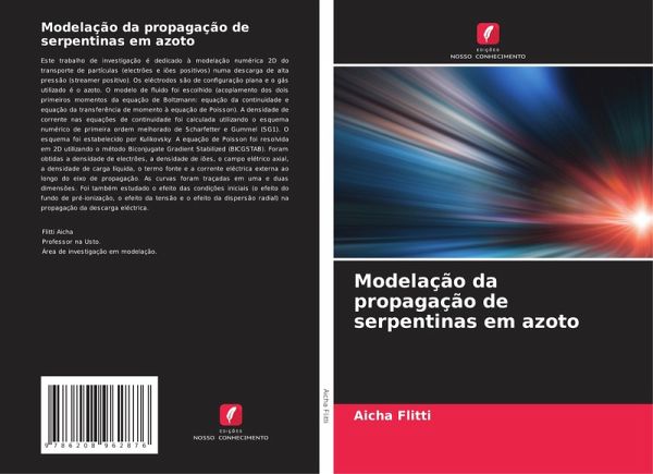 Este trabalho de investigação é dedicado à modelação numérica 2D do transporte de partículas (electrões e iões positivos) numa descarga de alta pressão (streamer positivo). Os eléctrodos são de configuração plana e o gás utilizado é o azoto. O modelo de fluido foi escolhido (acoplamento dos dois primeiros momentos da equação de Boltzmann: equação da continuidade e equação da transferência de momento à equação de Poisson). A densidade de corrente nas equações de continuidade foi calculada utilizando o esquema numérico de primeira ordem melhorado de Scharfetter e Gummel (SG1). O esquema foi estabelecido por Kulikovsky. A equação de Poisson foi resolvida em 2D utilizando o método Biconjugate Gradient Stabilized (BICGSTAB). Foram obtidas a densidade de electrões, a densidade de iões, o campo elétrico axial, a densidade de carga líquida, o termo fonte e a corrente eléctrica externa ao longo do eixo de propagação. As curvas foram traçadas em uma e duas dimensões. Foi também estudado o efeito das condições iniciais (o efeito do fundo de pré-ionização, o efeito da tensão e o efeito da dispersão radial) na propagação da descarga eléctrica.