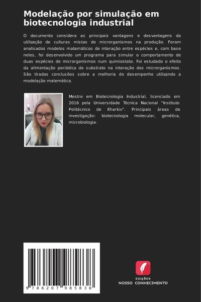 O documento considera as principais vantagens e desvantagens da utilização de culturas mistas de microrganismos na produção. Foram analisados modelos matemáticos de interação entre espécies e, com base neles, foi desenvolvido um programa para simular o comportamento de duas espécies de microrganismos num quimiostato. Foi estudado o efeito da alimentação periódica de substrato na interação dos microrganismos. São tiradas conclusões sobre a melhoria do desempenho utilizando a modelação matemática.