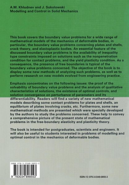 New trends in free boundary problems and new mathematical tools together with broadening areas of applications have led to attempts at presenting the state of art of the field in a unified way. In this monograph we focus on formal models representing contact problems for elastic and elastoplastic plates and shells. New approaches open up new fields for research. For example, in crack theory a systematic treatment of mathematical modelling and optimization of problems with cracks is required. Similarly, sensitivity analysis of solutions to problems subjected to perturbations, which forms an important part of the problem solving process, is the source of many open questions. Two aspects of sensitivity analysis, namely the behaviour of solutions under deformations of the domain of integration and perturbations of surfaces seem to be particularly demanding in this context. On writing this book we aimed at providing the reader with a self-contained study of the mathematical modelling in mechanics. Much attention is given to modelling of typical constructions applied in many different areas. Plates and shallow shells which are widely used in the aerospace industry provide good exam ples. Allied optimization problems consist in finding the constructions which are of maximal strength (endurance) and satisfy some other requirements, ego weight limitations. Mathematical modelling of plates and shells always requires a reasonable compromise between two principal needs. One of them is the accuracy of the de scription of a physical phenomenon (as required by the principles of mechanics).