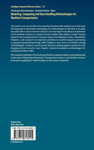 The intended readership of the book spans both an academic audience and professionals in the areas of Operational Research, Transportation Science, and Maritime Science interested in applying ITmethodologies in their areas of expertise.