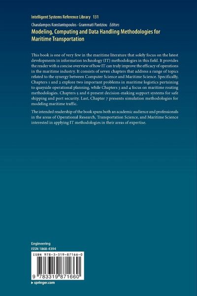 This book is one of very few in the maritime literature that solely focus on the latest developments in information technology (IT) methodologies in this field. It provides the reader with a concise overview of how IT can truly improve the efficacy of operations in the maritime industry. It consists of seven chapters that address a range of topics related to the synergy between Computer Science and Maritime Science. Specifically, Chapters 1 and 2 explore two important problems in maritime logistics pertaining to quayside operational planning, while Chapters 3 and 4 focus on maritime routing methodologies. Chapters 5 and 6 present decision-making support systems for safe shipping and port security. Last, Chapter 7 presents simulation methodologies for modeling maritime traffic.