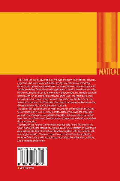 The goal of this Special Volume on Modeling, Design, and Simulation of Systems with Uncertainties is to cover modern methods for dealing with the challenges presented by imprecise or unavailable information. All contributions tackle the topic from the point of view of control, state andparameter estimation, optimization and simulation.