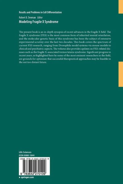 Introduction.-Probing Astrocyte Function in Fragile X Syndrome.- Neural Stem Cells.- Fragile X Mental Retardation Protein (FMRP) and the Spinal Sensory System.- The Role of the Postsynaptic Density in the Pathology of the Fragile X Syndrome.- Behavior in a Drosophila model of Fragile X.- Molecular and Genetic Analysis of the Drosophila Model of Fragile X Syndrome.- Fragile X Mental Retardation Protein and Stem Cells.- Manipulating the Fragile X Mental Retardation Proteins in the Frog.- Exploring the Zebra finch Taeniopygia gutta as a Novel Animal Model for the Speech-language Deficit of Fragile X Syndrome.- Neuroendocrine Alterations in the Fragile X Mouse.- Taking STEPs forward to understanding Fragile X Syndrome.- Fmr-1 as an Offspring Genetic and a Maternal Environmental Factor in Neurodevelopmental Disease.- Mouse Models of the Fragile X Premutation and the Fragile X Associated Tremor/Ataxia Syndrome.- Clinical Aspects of the Fragile X Syndrome.- Fragile X Syndrome: A Psychiatric Perspective.- Fragile X Syndrome and Targeted Treatment Trials.- The Fragile X-associate Tremor Ataxia Syndrome.- Vignettes: Models in Absentia.