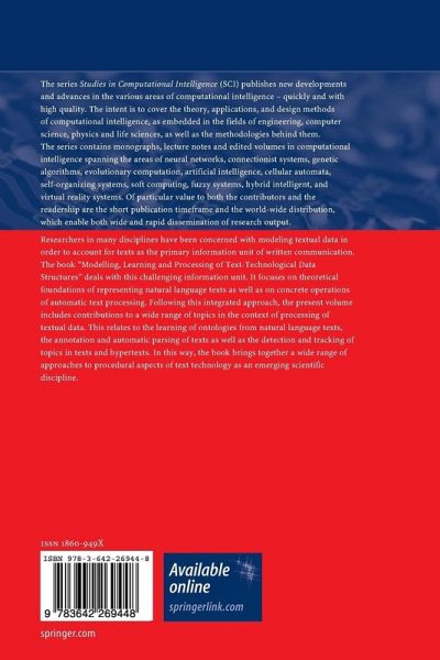 Researchers in many disciplines have been concerned with modeling textual data in order to account for texts as the primary information unit of written communication. The book "Modelling, Learning and Processing of Text-Technological Data Structures" deals with this challenging information unit. It focuses on theoretical foundations of representing natural language texts as well as on concrete operations of automatic text processing. Following this integrated approach, the present volume includes contributions to a wide range of topics in the context of processing of textual data. This relates to the learning of ontologies from natural language texts, the annotation and automatic parsing of texts as well as the detection and tracking of topics in texts and hypertexts. In this way, the book brings together a wide range of approaches to procedural aspects of text technology as an emerging scientific discipline.