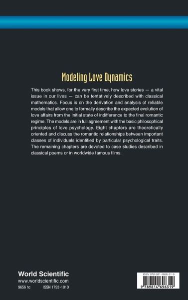 This book shows, for the very first time, how love stories — a vital issue in our lives — can be tentatively described with classical mathematics. Focus is on the derivation and analysis of reliable models that allow one to formally describe the expected evolution of love affairs from the initial state of indifference to the final romantic regime. The models are in full agreement with the basic philosophical principles of love psychology. Eight chapters are theoretically oriented and discuss the romantic relationships between important classes of individuals identified by particular psychological traits. The remaining chapters are devoted to case studies described in classical poems or in worldwide famous films.