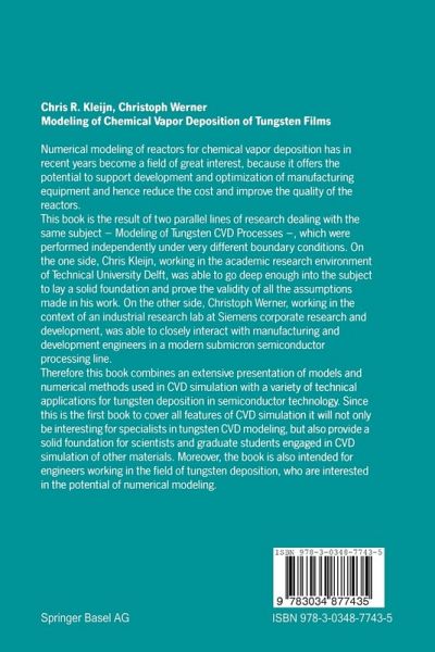 Semiconductor equipment modeling has in recent years become a field of great interest, because it offers the potential to support development and optimization of manufacturing equipment and hence reduce the cost and improve the quality of the reactors. This book is the result of two parallel lines of research dealing with the same subject - Modeling of Tungsten CVD processes -, which were per formed independently under very different boundary conditions. On the one side, Chris Kleijn, working in an academic research environment, was able to go deep enough into the subject to laya solid foundation and prove the validity of all the assumptions made in his work. On the other side, Christoph Werner, working in the context of an industrial research lab, was able to closely interact with manufacturing and development engineers in a modern submicron semiconductor processing line. Because of these different approaches, the informal collaboration during the course of the projects proved to be extremely helpful to both sides, even though - or perhaps because - different computer codes, different CVD reactors and also slightly different models were used. In spite of the inconsistencies which might arise from this double approach, we feel that the presentation of both sets of results in one book will be very useful for people working in similar projects.