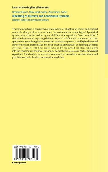 This book contains a comprehensive collection of chapters on recent and original research, along with review articles, on mathematical modeling of dynamical systems described by various types of differential equations. Structured into 18 chapters dedicated to exploring different aspects of differential equations and their applications in modeling both discrete and continuous systems, it highlights theoretical advancements in mathematics and their practical applications in modeling dynamic systems. Readers will find contributions by renowned scholars who delve into the intricacies of nonlinear dynamics, stochastic processes, and partial differential equations. This book is an essential resource for researchers, academicians, and practitioners in the field of mathematical modeling.