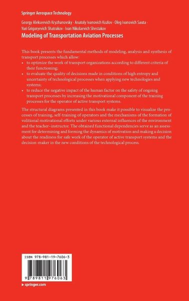 Introduction.- Chapter 1. Transportation systems: basic concepts, processes, directions of modeling and their research.- Chapter 2. Kinds of models and their general description. Modeling principles and models of transportation companies as hierarchical active systems (has).- Chapter 3. Basics of modeling control processes in transportation systems - has.- Chapter 4. Information, modeling and uncertainty measurement in transportation systems.- Chapter 5. Modeling of transportation processes in optimization and functioning transport space.- Chapter 6. Modeling of decision-making processes when driving in transport.- Chapter 7. Physical modeling of transportation processes. Simulation simulation, training complexes.- Chapter 8. Modeling of elements characterizing the activities of operators and dm of transportation processes.- Conclusion.