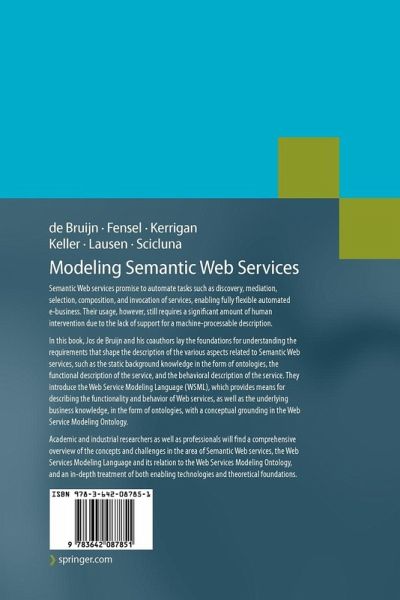 In this book, Jos de Bruijn and his coauthors lay the foundations for understanding the requirements that shape the description of the various aspects related to Semantic Web services, such as the static background knowledge in the form of ontologies, the functional description of the service, and the behavioral description of the service. They introduce the Web Service Modeling Language (WSML), which provides means for describing the functionality and behavior of Web services, as well as the underlying business knowledge, in the form of ontologies, with a conceptual grounding in the Web Service Modeling Ontology.
