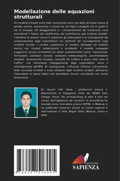 Gli incidenti stradali sono stati riconosciuti come una delle principali cause di perdite umane, economiche e sociali sia nei Paesi sviluppati che in quelli in via di sviluppo. Gli atteggiamenti e i comportamenti dei conducenti sono considerati il fattore più significativo che contribuisce agli incidenti stradali. L'obiettivo di questa ricerca è esplorare gli antecedenti e le conseguenze del comportamento degli automobilisti nei confronti del coinvolgimento negli incidenti stradali. I risultati supportano le relazioni ipotizzate nel modello teorico con risultati soddisfacenti e accettabili. Il modello sviluppato suggerisce alcune correlazioni tra fattori complementari come ¿conoscenza, formazione, condizioni stradali, condizioni meteorologiche, pavimentazione stradale, allineamento stradale, controllo del traffico e lavoro nelle zone di trafficö che influenzano l'atteggiamento degli automobilisti verso il coinvolgimento dell'RTA. Di conseguenza, l'influenza influisce sull'aumento della sicurezza stradale e sulla riduzione degli incidenti stradali, attraverso l'interazione di questi fattori che potrebbero essere considerati una nuova dimensione.