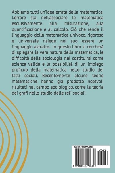 Abbiamo tutti un'idea errata della matematica. L'errore sta nell'associare la matematica esclusivamente alla misurazione, alla quantificazione e al calcolo. Ciò che rende il linguaggio della matematica univoco, rigoroso e universale risiede nel suo essere un linguaggio astratto. In questo libro si cercherà di spiegare la vera natura della matematica. Le difficoltà della sociologia nel costituirsi come scienza valida risiedono anche in una visione epistemologica riduttiva che non permette di ampliare i propri orizzonti concettuali e metodologici.