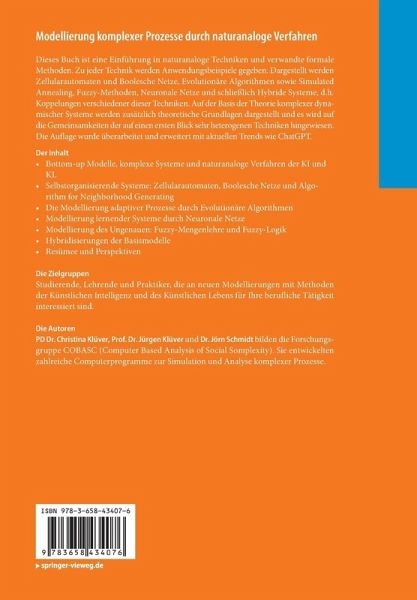 Dieses Buch ist eine Einführung in naturanaloge Techniken und verwandte formale Methoden. Zu jeder Technik werden Anwendungsbeispiele gegeben. Dargestellt werden Zellularautomaten und Boolesche Netze, Evolutionäre Algorithmen sowie Simulated Annealing, Fuzzy-Methoden, Neuronale Netze und schließlich Hybride Systeme, d.h. Koppelungen verschiedener dieser Techniken. Auf der Basis der Theorie komplexer dynamischer Systeme werden zusätzlich theoretische Grundlagen dargestellt und es wird auf die Gemeinsamkeiten der auf einen ersten Blick sehr heterogenen Techniken hingewiesen. Die Auflage wurde überarbeitet und erweitert mit aktuellen Trends wie ChatGPT.