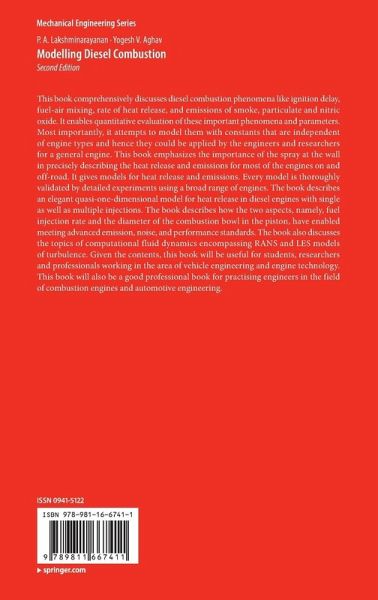 This book comprehensively discusses diesel combustion phenomena like ignition delay, fuel-air mixing, rate of heat release, and emissions of smoke, particulate and nitric oxide. It enables quantitative evaluation of these important phenomena and parameters. Most importantly, it attempts to model them with constants that are independent of engine types and hence they could be applied by the engineers and researchers for a general engine. This book emphasizes the importance of the spray at the wall in precisely describing the heat release and emissions for most of the engines on and off-road. It gives models for heat release and emissions. Every model is thoroughly validated by detailed experiments using a broad range of engines. The book describes an elegant quasi-one-dimensional model for heat release in diesel engines with single as well as multiple injections. The book describes how the two aspects, namely, fuel injection rate and the diameter of the combustion bowl in the piston, have enabled meeting advanced emission, noise, and performance standards. The book also discusses the topics of computational fluid dynamics encompassing RANS and LES models of turbulence. Given the contents, this book will be useful for students, researchers and professionals working in the area of vehicle engineering and engine technology. This book will also be a good professional book for practising engineers in the field of combustion engines and automotive engineering.