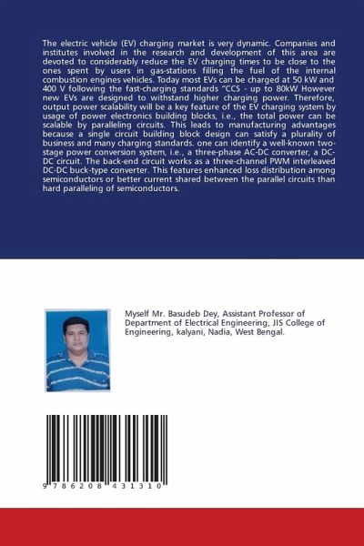 The electric vehicle (EV) charging market is very dynamic. Companies and institutes involved in the research and development of this area are devoted to considerably reduce the EV charging times to be close to the ones spent by users in gas-stations filling the fuel of the internal combustion engines vehicles. Today most EVs can be charged at 50 kW and 400 V following the fast-charging standards "CCS - up to 80kW However new EVs are designed to withstand higher charging power. Therefore, output power scalability will be a key feature of the EV charging system by usage of power electronics building blocks, i.e., the total power can be scalable by paralleling circuits. This leads to manufacturing advantages because a single circuit building block design can satisfy a plurality of business and many charging standards. one can identify a well-known two-stage power conversion system, i.e., a three-phase AC-DC converter, a DC-DC circuit. The back-end circuit works as a three-channel PWM interleaved DC-DC buck-type converter. This features enhanced loss distribution among semiconductors or better current shared between the parallel circuits than hard paralleling of semiconductors.