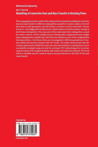 This monograph presents results of the analytical and numerical modeling of convective heat and mass transfer in different rotating flows caused by (i) system rotation, (ii) swirl flows due to swirl generators, and (iii) surface curvature in turns and bends. Volume forces (i.e. centrifugal and Coriolis forces), which influence the flow pattern, emerge in all of these rotating flows. The main part of this work deals with rotating flows caused by system rotation, which includes several rotating-disk configurations and straight pipes rotating about a parallel axis. Swirl flows are studied in some of the configurations mentioned above. Curvilinear flows are investigated in different geometries of two-pass ribbed and smooth channels with 180° bends. The author demonstrates that the complex phenomena of fluid flow and convective heat transfer in rotating flows can be successfully simulated using not only the universal CFD methodology, but in certain cases by means of the integral methods, self-similar and analytical solutions. The book will be a valuable read for research experts and practitioners in the field of heat and mass transfer.