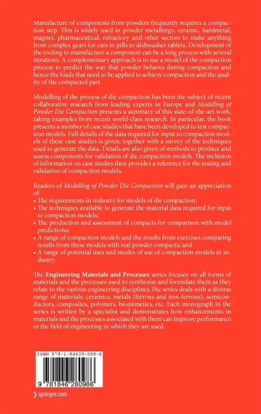 Modelling of the process of die compaction has been the subject of recent collaborative research from leading experts in Europe and this book presents a summary of the state of the art, taking examples from recent world-class research. Case studies are presented, providing a reference for the testing and validation of these compaction models.