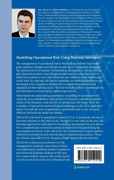 This book is devoted to quantitative issues in LDA. In particular, the use of Bayesian inference is the main focus. Though it is very new in this area, the Bayesian approach is well suited for modelling operational risk, as it allows for a consistent and convenient statistical framework for quantifying the uncertainties involved. It also allows for the combination of expert opinion with historical internal and external data in estimation procedures. These are critical, especially for low-frequency/high-impact operational risks.