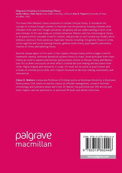Another unique aspect of this work is that it places lifestyle theory within a larger scientific framework, namely, nonlinear dynamical systems theory or chaos. Seven principles from chaos theory are used to explain relationships and processes central to lifestyle theory and Walters uses this to draw conclusions on what affects criminal decision-making and desistance from crime. Highly original and innovative in scope, this book will be useful to practitioners and scholars of criminal justice alike, with chapters focussed on decision-making, assessment, and intervention.