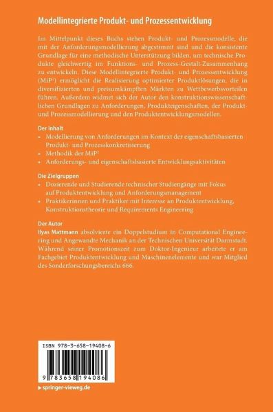 Im Mittelpunkt dieses Buchs stehen Produkt- und Prozessmodelle, die mit der Anforderungsmodellierung abgestimmt sind und die konsistente Grundlage für eine methodische Unterstützung bilden, um technische Produkte gleichwertig im Funktions- und Prozess-Gestalt-Zusammenhang zu entwickeln. Diese Modellintegrierte Produkt- und Prozessentwicklung (MiP 2 ) ermöglicht die Realisierung optimierter Produktlösungen, die in diversifizierten und preisumkämpften Märkten zu Wettbewerbsvorteilen führen. Außerdem widmet sich der Autor den konstruktionswissenschaftlichen Grundlagen zu Anforderungen, Produkteigenschaften, der Produkt- und Prozessmodellierung und den Produktentwicklungsmodellen.