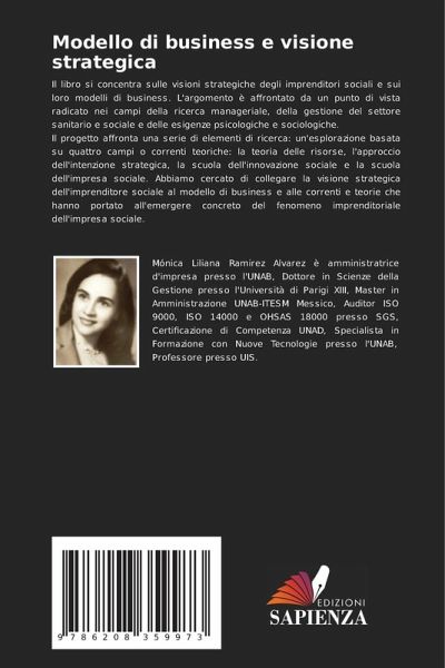 Il libro si concentra sulle visioni strategiche degli imprenditori sociali e sui loro modelli di business. L'argomento è affrontato da un punto di vista radicato nei campi della ricerca manageriale, della gestione del settore sanitario e sociale e delle esigenze psicologiche e sociologiche. Il progetto affronta una serie di elementi di ricerca: un'esplorazione basata su quattro campi o correnti teoriche: la teoria delle risorse, l'approccio dell'intenzione strategica, la scuola dell'innovazione sociale e la scuola dell'impresa sociale. Abbiamo cercato di collegare la visione strategica dell'imprenditore sociale al modello di business e alle correnti e teorie che hanno portato all'emergere concreto del fenomeno imprenditoriale dell'impresa sociale.