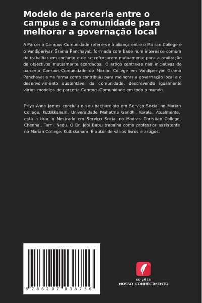 A Parceria Campus-Comunidade refere-se à aliança entre o Marian College e o Vandiperiyar Grama Panchayat, formada com base num interesse comum de trabalhar em conjunto e de se reforçarem mutuamente para a realização de objectivos mutuamente acordados. O artigo centra-se nas iniciativas de parceria Campus-Comunidade do Marian College em Vandiperiyar Grama Panchayat e na forma como contribuiu para melhorar a governação local e o desenvolvimento sustentável da comunidade, descrevendo igualmente vários modelos de parceria Campus-Comunidade em todo o mundo.