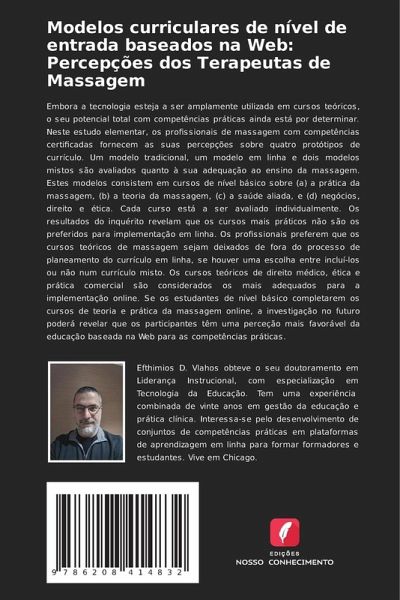 Embora a tecnologia esteja a ser amplamente utilizada em cursos teóricos, o seu potencial total com competências práticas ainda está por determinar. Neste estudo elementar, os profissionais de massagem com competências certificadas fornecem as suas percepções sobre quatro protótipos de currículo. Um modelo tradicional, um modelo em linha e dois modelos mistos são avaliados quanto à sua adequação ao ensino da massagem. Estes modelos consistem em cursos de nível básico sobre (a) a prática da massagem, (b) a teoria da massagem, (c) a saúde aliada, e (d) negócios, direito e ética. Cada curso está a ser avaliado individualmente. Os resultados do inquérito revelam que os cursos mais práticos não são os preferidos para implementação em linha. Os profissionais preferem que os cursos teóricos de massagem sejam deixados de fora do processo de planeamento do currículo em linha, se houver uma escolha entre incluí-los ou não num currículo misto. Os cursos teóricos de direito médico, ética e prática comercial são considerados os mais adequados para a implementação online. Se os estudantes de nível básico completarem os cursos de teoria e prática da massagem online, a investigação no futuro poderá revelar que os participantes têm uma perceção mais favorável da educação baseada na Web para as competências práticas.