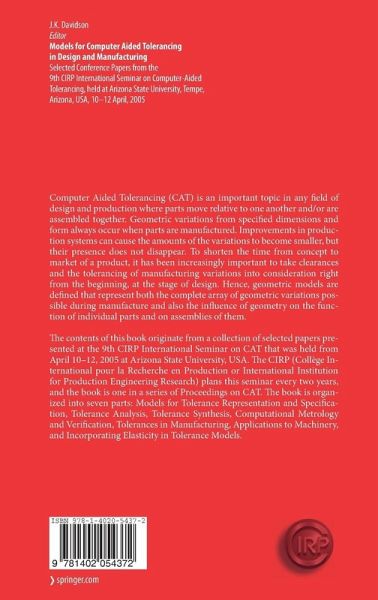 The contents of this book originate from a collection of selected papers presented at the 9th CIRP International Seminar on CAT that was held from April 10-12, 2005 at Arizona State University, USA. The CIRP (Collège International pour la Recherche en Production or International Institution for Production Engineering Research) plans this seminar every two years, and the book is one in a series of Proceedings on CAT. The book is organized into seven parts: Models for Tolerance Representation and Specification, Tolerance Analysis, Tolerance Synthesis, Computational Metrology and Verification, Tolerances in Manufacturing, Applications to Machinery, and Incorporating Elasticity in Tolerance Models.