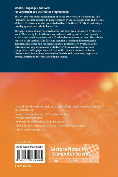 The papers present many research ideas that have been influenced by Rocco's work. They testify his intellectual curiosity, versatility and tireless research activity, and provide an overview of further developments to come. The volume consists of six sections. The first one contains a laudation illustrating the distinguished career and the main scientific contributions by Rocco and a witness of working experiences with Rocco. The remaining five sections comprise scientific papers related to specific research interests of Rocco and are ordered according to his scientific evolution: Observational Semantics; Logics and Types; Coordination Models and Languages; Distributed Systems Modelling; Security.