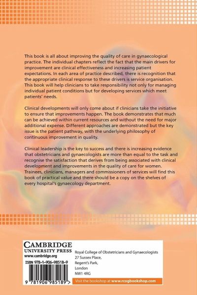 This book helps to improve the quality of the care in gynaecological practice. Improvement is driven by clinical effectiveness and increasing patient demands, and for each area of practice described this book outlines the service organization needed to achieve this improvement. The goal is to help clinicians take responsibility for developing services that meet the needs of their patients as well as managing their individual medical conditions. The book demonstrates that much can be achieved within current resources and without the need for major additional expense. Different approaches are demonstrated but the key issue is the patient pathway, with the underlying philosophy of continuous improvement in quality. Trainees, clinicians, managers and commissioners of services in obstetrics and gynaecology will find this book of immense practical value.