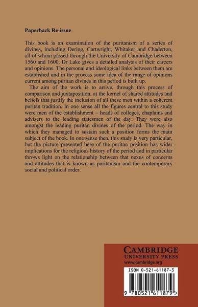 This book is an examination of the puritanism of a series of divines, including Dering, Cartwright, Whitaker and Chaderton, all of whom passed through the University of Cambridge between 1560 and 1600. Dr Lake gives a detailed analysis of their careers and opinions. The personal and ideological links between them are established and in the process some idea of the range of opinions current among puritan divines in this period is built up. The aim of the work is to arrive, through this process of comparison and juxtaposition, at the kernel of shared attitudes and beliefs that justify the inclusion of all these men within a coherent puritan tradition.