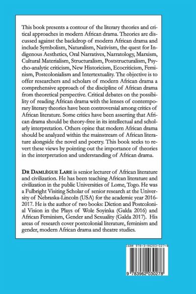 This book presents a contour of the literary theories and critical approaches in modern African drama. Theories are discussed against the backdrop of modern African drama and include Symbolism, Naturalism, Nativism, the quest for Indigenous Aesthetics, Oral Narratives, Narratology, Marxism, Cultural Materialism, Structuralism, Poststructuralism, Psycho-analytic criticism, New Historicism, Ecocriticism, Feminism, Postcolonialism and Intertextuality. The objective is to offer researchers and scholars of modern African drama a comprehensive approach of the discipline of African drama from theoretical perspective. Critical debates on the possibility of reading African drama with the lenses of contemporary literary theories have been controversial among critics of African literature. Some critics have been asserting that African drama should be theory-free in its intellectual and scholarly interpretation. Others opine that modern African drama should be analyzed within the mainstream of African literature alongside the novel and poetry. This book seeks to revert these views by pointing out the importance of theories in the interpretation and understanding of African drama.