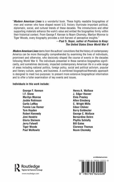 Includes narrative biographies of people who significantly, and sometimes decisively, impacted contemporary American life in a range of areas, including national politics, foreign policy, social and political activism, popular and literary culture, sports, and business.