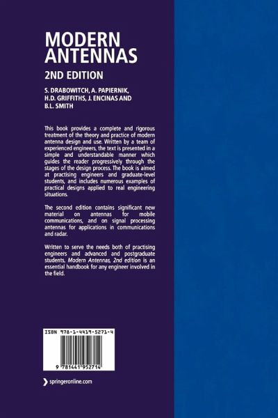Modern Antennas, 2nd edition provides a complete and rigorous treatment of the theory and practice of modern antenna design and use. Written by a team of experienced engineers, the text is presented in a simple and understandable manner which guides the reader progressively through the stages of the design process. The book is aimed at practising engineers and graduate-level students, and includes numerous examples of practical designs applied to real engineering situations.