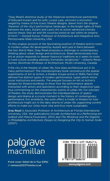 "Gray Read's attentive study of the theatrical-architectural partnership of Edouard Autant and his wife, Louise Lara, uncovers a revolution waged by means of five iconic theatre designs, drawn from the original 'theatres' of the city's performative landscape. In the bright lights of Paris between the wars, Autant and Lara's Art et action advanced a boldly precise thesis: that art and life could be joined at last within an enigma of form." - Donald Kunze, Professor of Architecture and Integrative Arts, Pennsylvania State University, USA