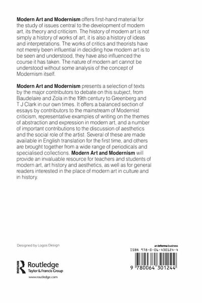 Modern Art and Modernism offers firsthand material for the study of issues central to the development of modern art, its theory, and criticism. The history of modern art is not simply a history of works of art, it is also a history of ideas interpretations. The works of critics and theorists have not merely been influential in deciding how modern art is to be seen and understood, they have also influenced the course it has taken. The nature of modern art cannot be understood without some analysis of the concept of Modernism itself.Modern Art and Modernism presents a selection of texts by the major contributors to debate on this subject, from Baudelaire and Zola in the nineteenth century to Greenberg and T. J. Clark in our own times. It offers a balanced section of essays by contributors to the mainstream of Modernist criticism, representative examples of writing on the themes of abstraction and expression in modern art, and a number of important contributions to the discussion of aesthetics and the social role of the artist. Several of these are made available in English translation for the first time, and others are brought together from a wide range of periodicals and specialized collections.This book will provide an invaluable resource for teachers and students of modern art, art history, and aesthetics, as well as for general readers interested in the place of modern art in culture and history.