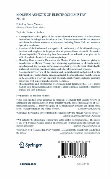 From the reviews: "The 41st volume in this series covers a range of topics that touch on issues of potential interest to those working in electrochemistry-related fields. ... Overall, this text contains a diverse collection of topics that would be of varying degrees of interest to the broader electrochemistry community. More likely, the individual chapters would be most valued by specialists working in these areas." (Andrew C. Hillier, Journal of the American Chemical Society, Vol. 130 (2), 2008) "As the most recent volume of a successful series established 1954 and carefully continued this book provides a timely collection of four review papers covering widely distributed aspects of electrochemistry in representative contributions. ... The book is a must for all libraries already owning previous volumes, in addition the contributions themselves justify acquisition for specialists entering the respective fields and subjects." (Rudolf Holze, Journal of Solid State Electrochemistry, Vol. 12, 2008)