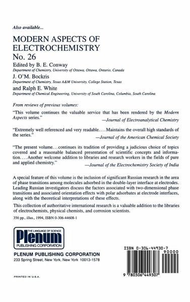 From reviews of previous volumes: 'This volume continues the valuable service that has been rendered by the Modern Aspects series.'-Journal of Electroanalytical Chemistry 'Extremely well referenced and very readable....Maintains the overall high standards of the series.'-Journal of the American Chemical Society