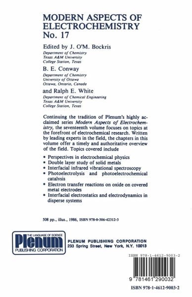 This volume of Modern Aspects of Electrochemistry contains six chapters. The first four chapters are about phenomena of interest at the microscopic level and the last two are on phenomena at the macroscopic level. In the first chapter, Uosaki and Kita review various theoretical models that have been presented to describe the phenomena that occur at an electrolyte/ semiconductor interface under illumination. In the second chapter, Orazem and Newman discuss the same phenomena from a different point of view. In Chapter 3, Bogus lavsky presents state-of-the-art considerations of transmembrane…mehr