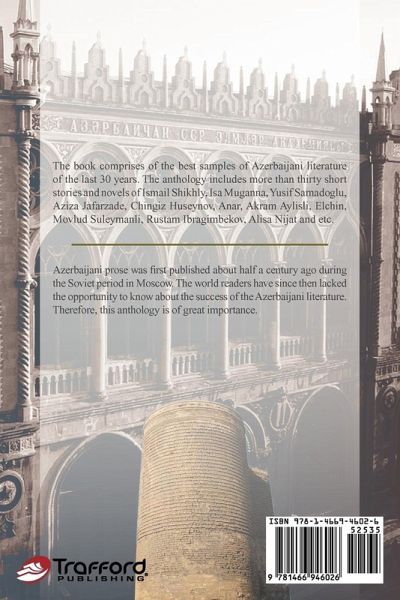The book comprises of the best samples of Azerbaijani literature of the last 30 years. The anthology includes more than thirty short stories and novels of Ismail Shikhli, Isa Muganna, Anar, Akram Aylisli, Elchin, Alisa Nijat and etc. Azerbaijani prose was first published about half century ago during the Soviet period in Moscow. The world readers have since then lacked the opportunity to know about the success of the Azerbaijani literature. Therefore, this anthology is of great importance.
