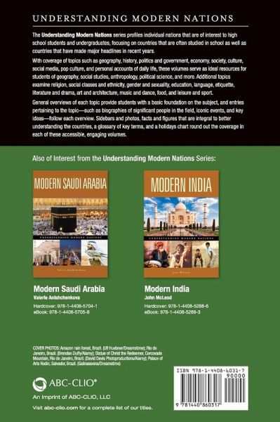 This book is a crucial reference source for high school and undergraduate college students interested in contemporary Brazil. While it provides a general historical and cultural background, it also focuses on issues affecting modern Brazil. In recent years, Brazil has come onto the world stage as an economic powerhouse, a leader in Latin America. This latest addition to the Understanding Modern Nations series focuses on Brazil's culture, history, and society. This volume provides readers with a wide understanding of Brazil's historical past, the foundation for its cultural traditions, and an understanding of its social structure. In addition, it provides a look into contemporary society by highlighting both national accomplishments and challenges Brazilians face in the twenty-first century. Specific chapters cover geography; history; government and politics; economy; religion; social classes and ethnicity; gender, marriage and sexuality; education; language; etiquette; literature and drama; arts and architecture; music and dance; food; leisure and sports; and media, cinema, and popular culture. Entries within each chapter look at topics such as cultural icons, economic inequalities, race and ethnicity, soccer, politics, environmental conservation, and women's rights. Ideal for high school and undergraduate students, this volume paints a panoramic overview of one of the most powerful countries in the Americas.