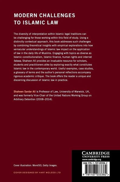 The diversity of interpretation within Islamic legal traditions can be challenging for those working within this field of study. Using a distinctly contextual approach, this book addresses such challenges by combining theoretical perspectives on Islamic law with insight into how local understandings impact on the application of law in Muslim daily life. Engaging with topics as diverse as Islamic constitutionalism, Islamic finance, human rights and internet fatawa, Shaheen Sardar Ali provides an invaluable resource for scholars, students and practitioners alike by exploring exactly what constitutes Islamic law in the contemporary world. Useful examples, case studies, a glossary of terms and the author's personal reflections accompany traditional academic critique, and together offer the reader a unique and discerning discussion of Islamic law in practice.